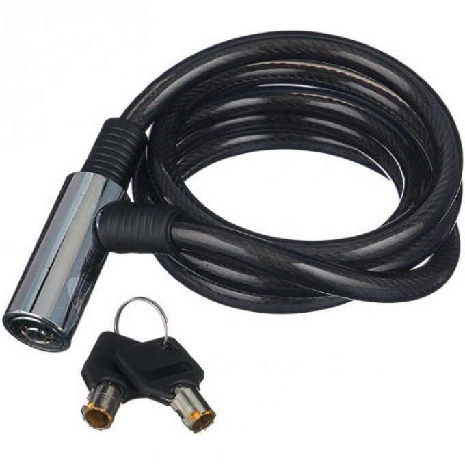 Трос-замок 87204, трос 10х1500 мм, замок с ключами, цвет черный, замок хромированный