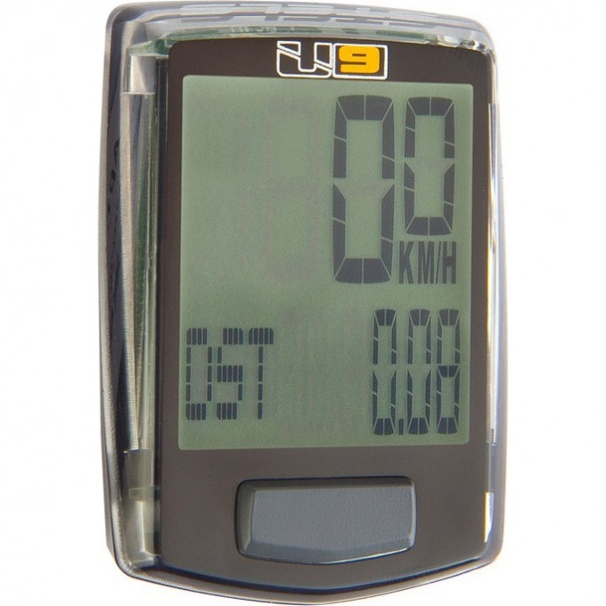 Велокомпьютер U9 чёрный, 9 функций: текущая, средняя и максимальная скорости, текущий пробег, общий пробег, время езды, часы, указатель среднего темпа езды, индикация снижения выброса СО2. Элемент питания CR2032.