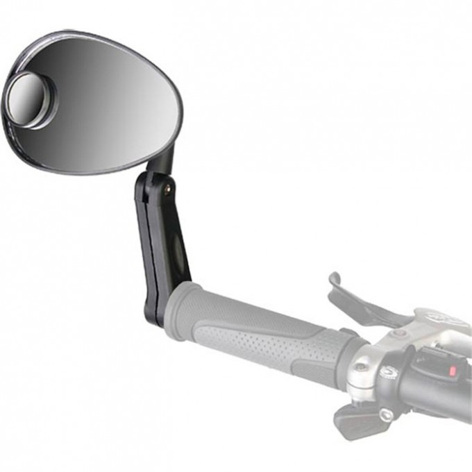 Зеркало заднего вида DX-222D с дополнительным широкоугольным выпуклым зеркалом, крепится вместо заглушки грипсы, размер основного зеркала 115х75 мм, общая длина 170мм, пластик ПВХ, чёрное